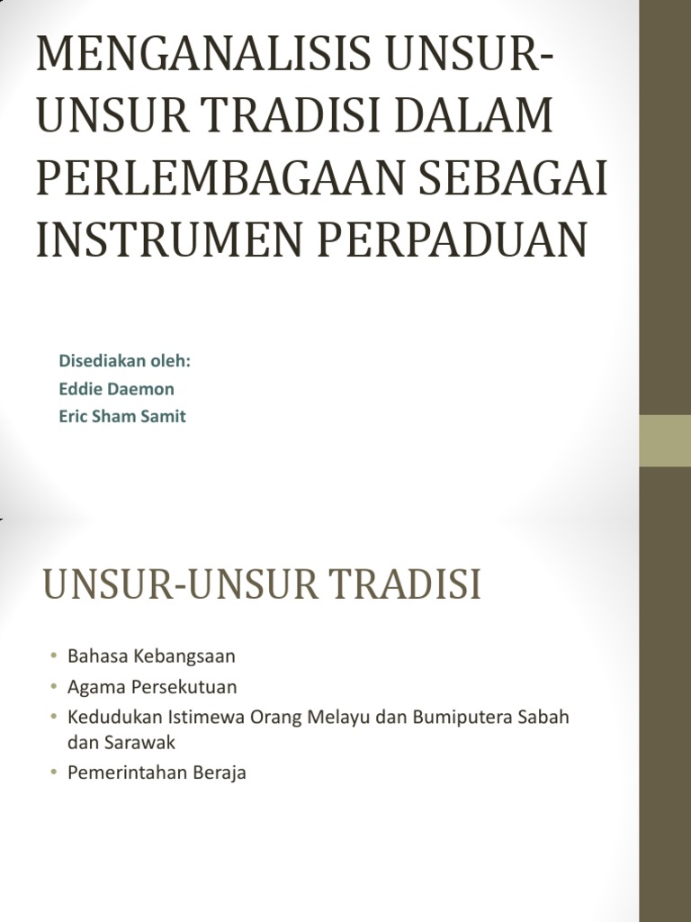 Pendahuluan & pengenalan perlembagaan persekutuan mengandungi 183 unsur tradisi sudah lama wujud dan termaktub dalam perlembagaan malaysia.
